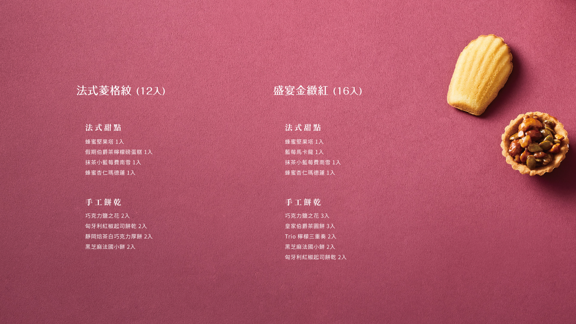 · 最佳賞味期限 : 手工餅乾14天、法式甜點10天。